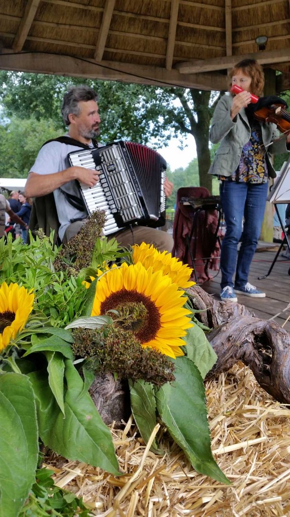 De muzikale omlijsting is in handen van Joint String Friends, herkenbaar aan hun kilts. Op de brink staan de kramen verzorgd opgesteld en bij binnenkomst word je ontvangen met bloemschikkingen en kransen. Het terras is geopend en biedt ruimte om even te zitten.